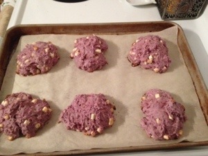Drop onto parchment lined cookie sheet. About 1/2 cup per scone.