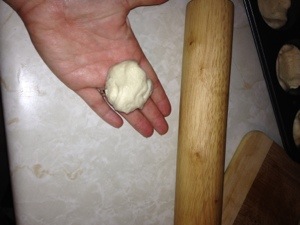 Once the mixture is well combine form well packed meatballs in your choice of size…I made giant meatballs a little larger then golf balls.