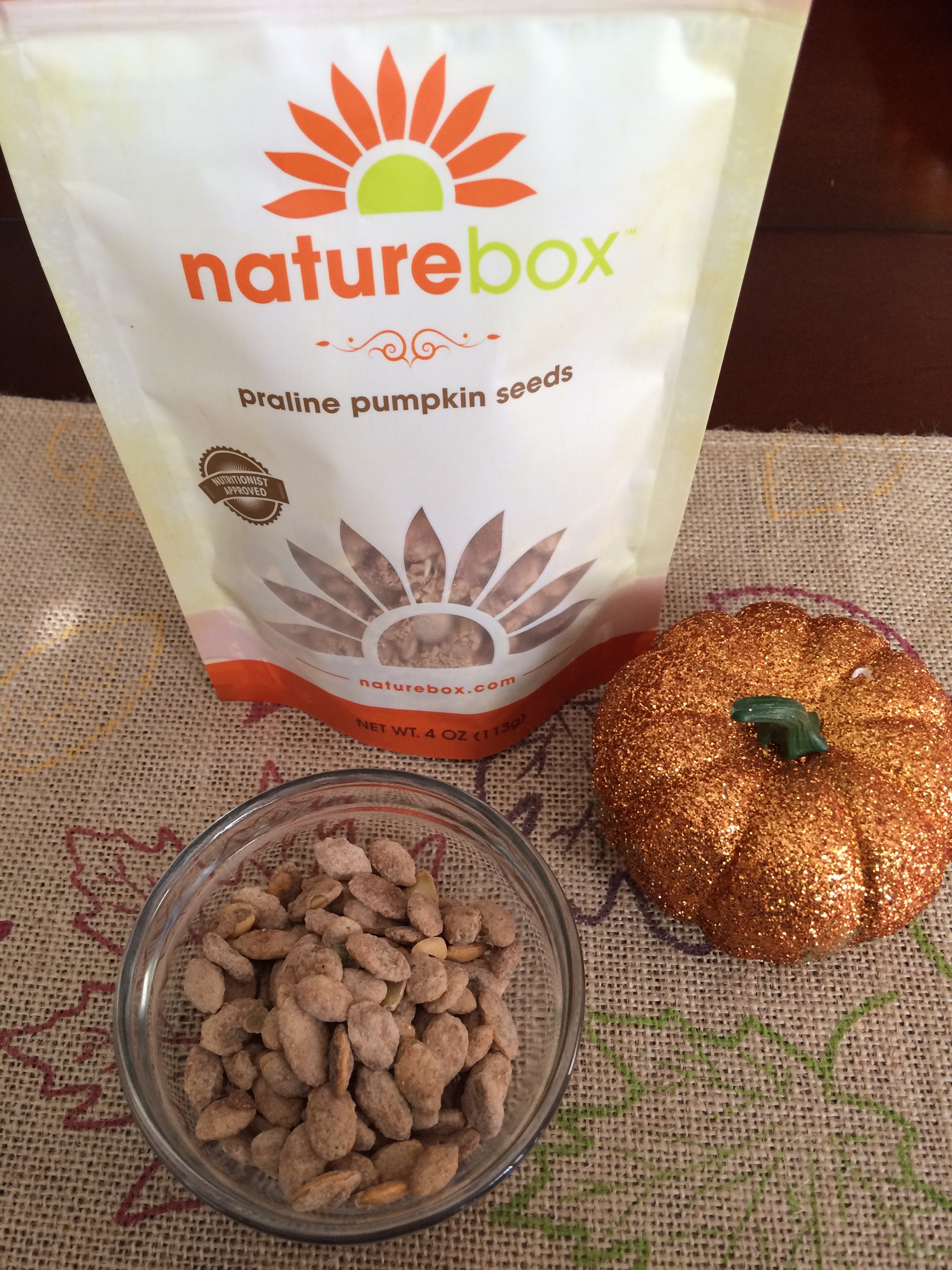 It took me a while to pick out what I wanted to try but I finally settled on Prailne pumpkin seeds, Peanut butter yum yums, Harvest nut mix, Sweet and Salty nuts, and Whole wheat strawberry fig bars.